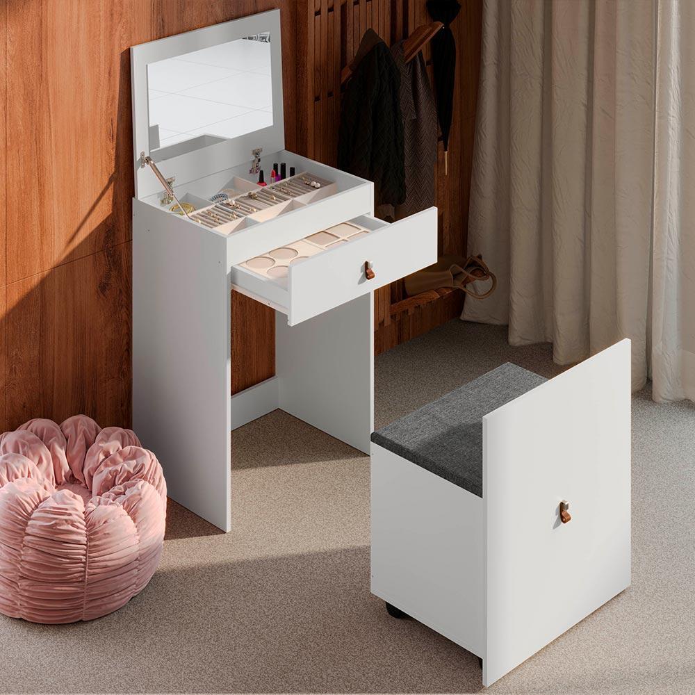 Incluye taburete baúl.